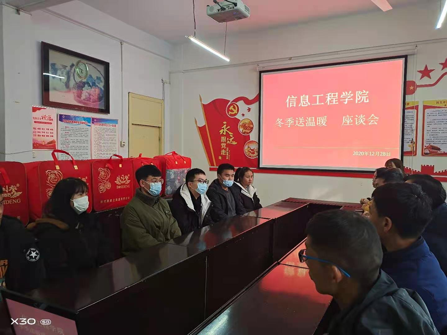 2020年12月28日在信息工程公司陈相志经理的带领下, 认真组织,深入开展了解贫困生情况,给贫困同学送棉被活动,真正的给贫困的同学送去温暖,给他们切实的关怀。 让他们得到关爱,在这个冬季不再感觉寒冷。