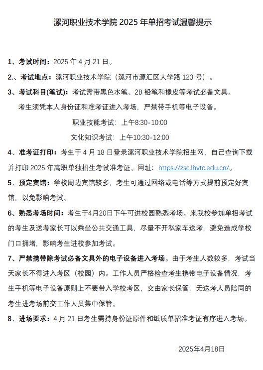 365官网体育2025年单招考试温馨提示